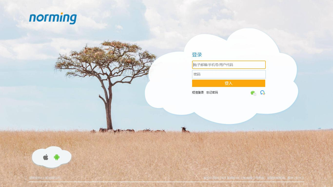 打开网页浏览器,在网址栏中输入诺明 PSA 管理系统的业务平台的网络链接。租用公有云服务的客户在网页浏览器输入:http://bj.psaas.cn/ess;本地部署的客户则输入个性化的网络链接。网络浏览器将显示诺明 PSA 管理系统的业务平台的登录界面,如下图所示: